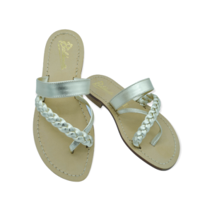 Modello ad infradito con cinturino e tomaia intrecciata con pelle e corda, interamente realizzato a mano con materiali e pellami di prima qualità 100% Made in Italy.
