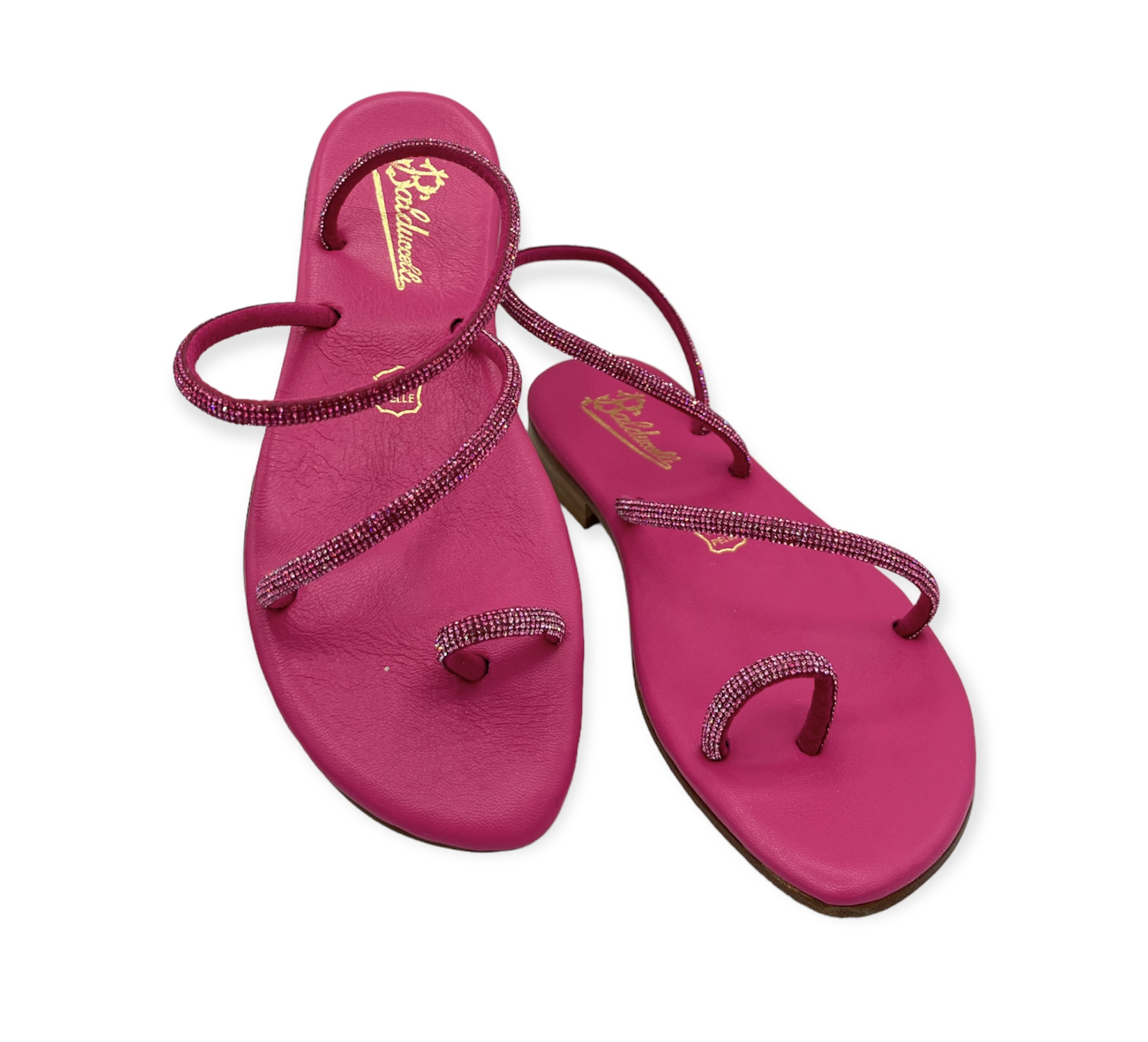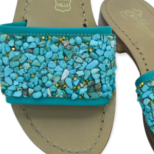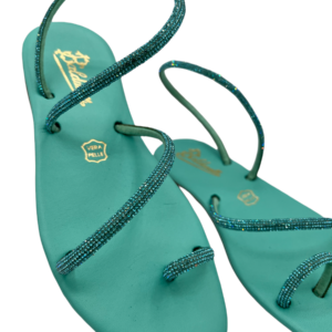 Modello con dito, fascetta trasversale e una giro caviglia, ricoperte di strass. Interamente realizzato a mano con materiali e pellami di prima qualità 100% Made in Italy.