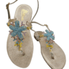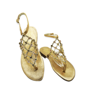 Modello ad infradito con elegante applicazione gioiello a forma di rombo e chiusura alla caviglia, sottopiede imbottito rivestito in pelle, per garantire maggiore confort ed eleganza.Interamente realizzato a mano con materiali e pellami di prima qualità 100% Made in Italy.