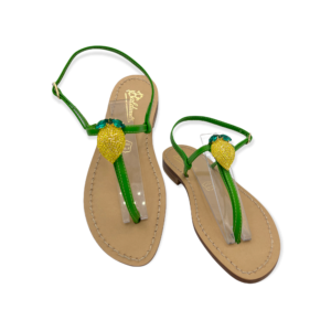 Modello ad infradito e cinturino con applicazione gioiello ,interamente realizzato a mano con materiali e pellami di prima qualità 100% Made in Italy.