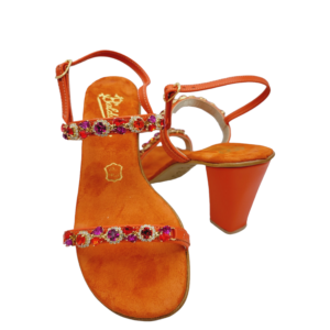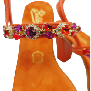 Raffinato ed elegante modello a doppia fascia con cinturino,impreziosito da scintillanti cristalli Swaroswky. Sottopiede imbottito e rivestito in pelle per garantire maggiore confort ed eleganza. Interamente realizzato a mano con materiali e pellami di prima qualità 100% Made in Italy.
