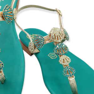 Modello ad infradito a V con applicazione gioiello, sottopiede imbottito rivestito in pelle. Interamente realizzato a mano con materiali e pellami di prima qualità 100% Made in Italy.